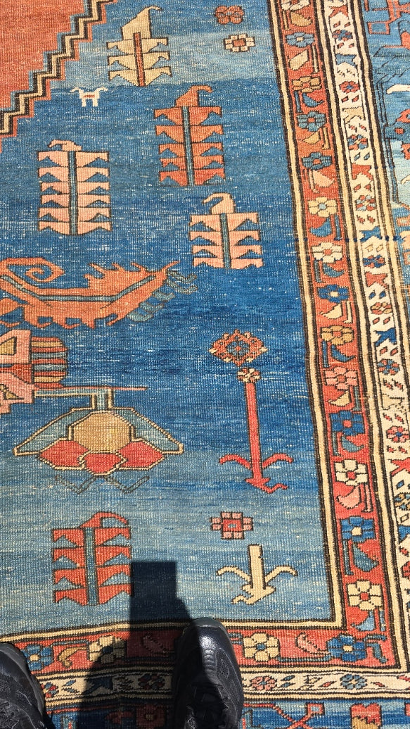 Bakshaish is the oldest rug weaving village in the region of Persian Azerbaijan, noted for carpets with highly artistic, tremendously diverse abstracted adaptations of age-old tribal and classical Persian motifs. The finest antique Bakshaish (also spelled Bakhshayesh or Bakshish) are typically larger carpets (8×11 to 13×17) with a geometric, folkloric character found predominantly in small tribal rugs.