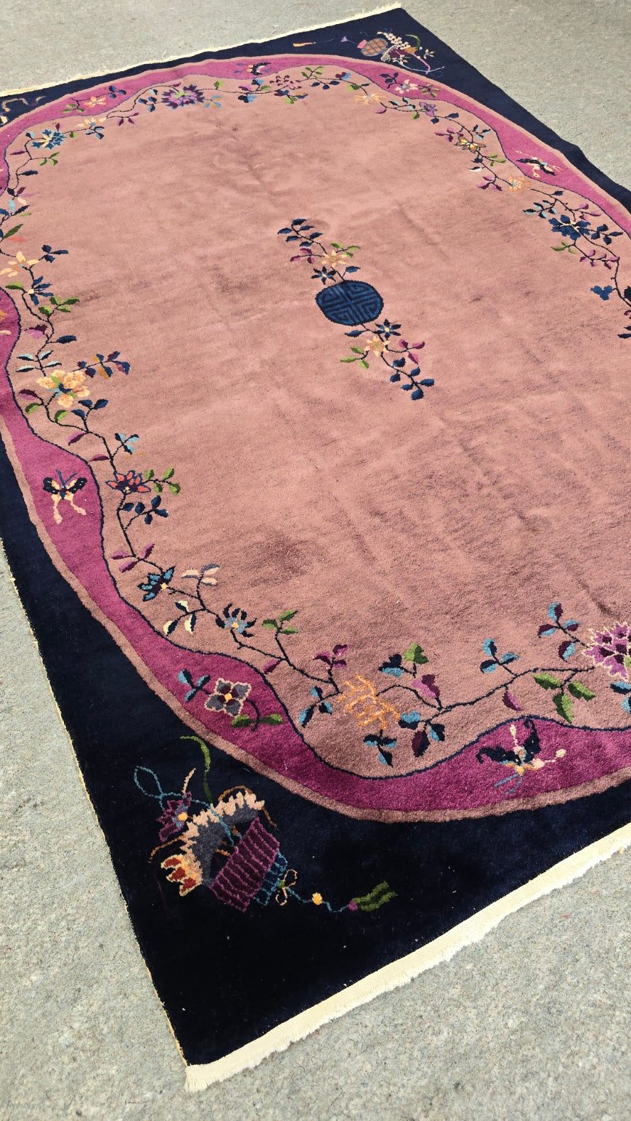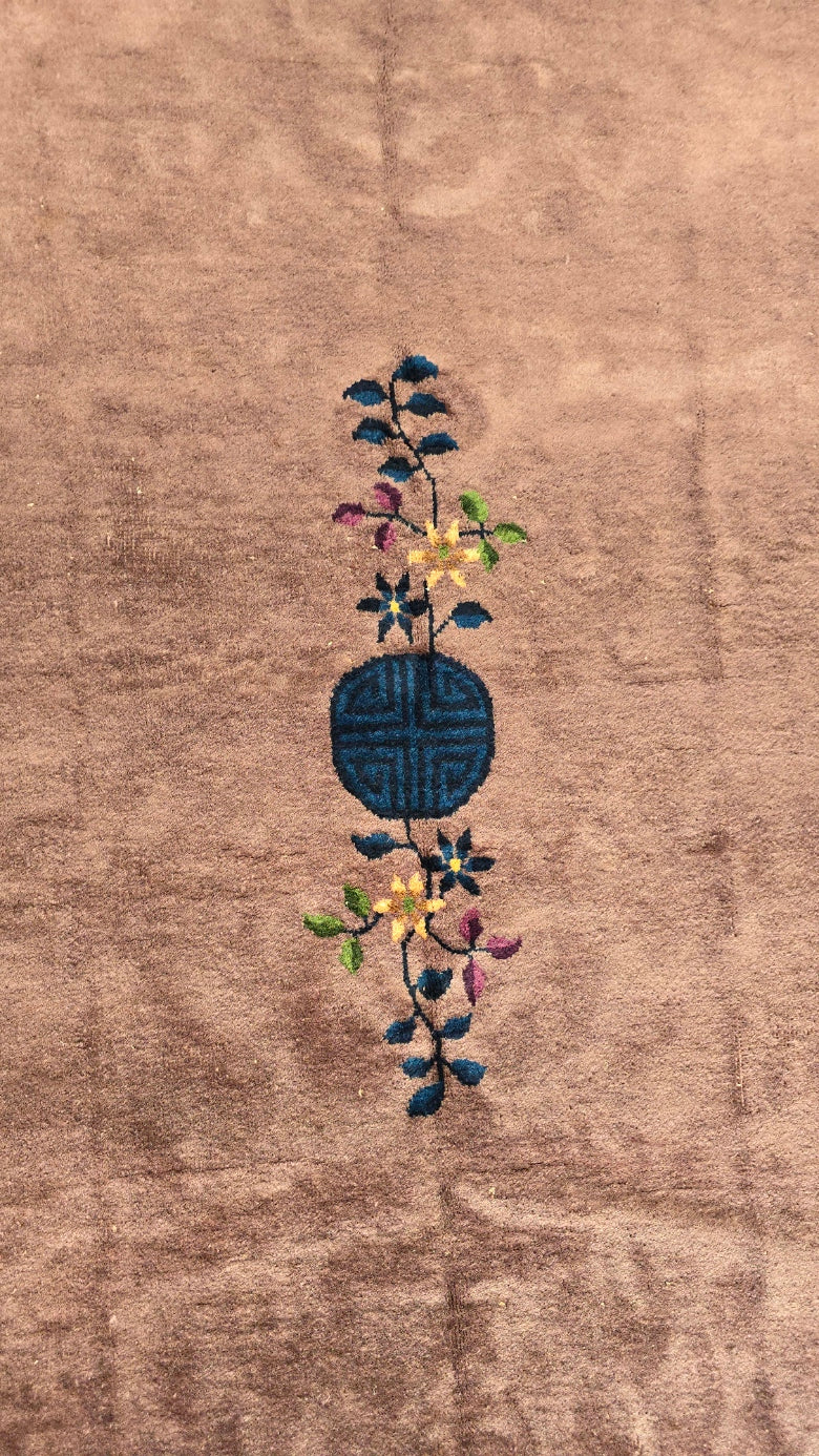 The most recognizable rugs from the 1920s and 1930s are Chinese Rugs made by Walter Nichols. These Nichols rugs, as they came to be known, were primarily made during the Art Deco movement in the early 20th Century. They were usually made of wool and silk and depicted floral designs in very rich, bold colors like magenta, turquoise, emerald, canary and ruby. They either had a very thick border or none at all. Nichols specialized in a mechanized wool spinning technique that produced a very thick strand - ideal for rugs. He was inspired by the works of many Art Deco artists and began to incorporate some classic deco motifs into his designs. Nichols rugs became wildly popular in the Art Deco era - they were luxurious and exotic - the epitome of Art Deco style.