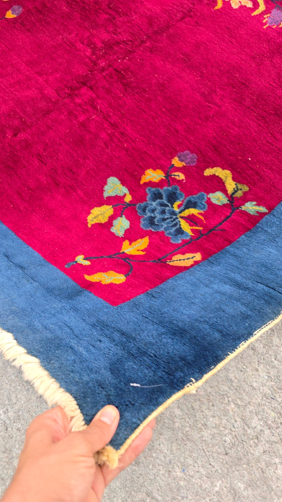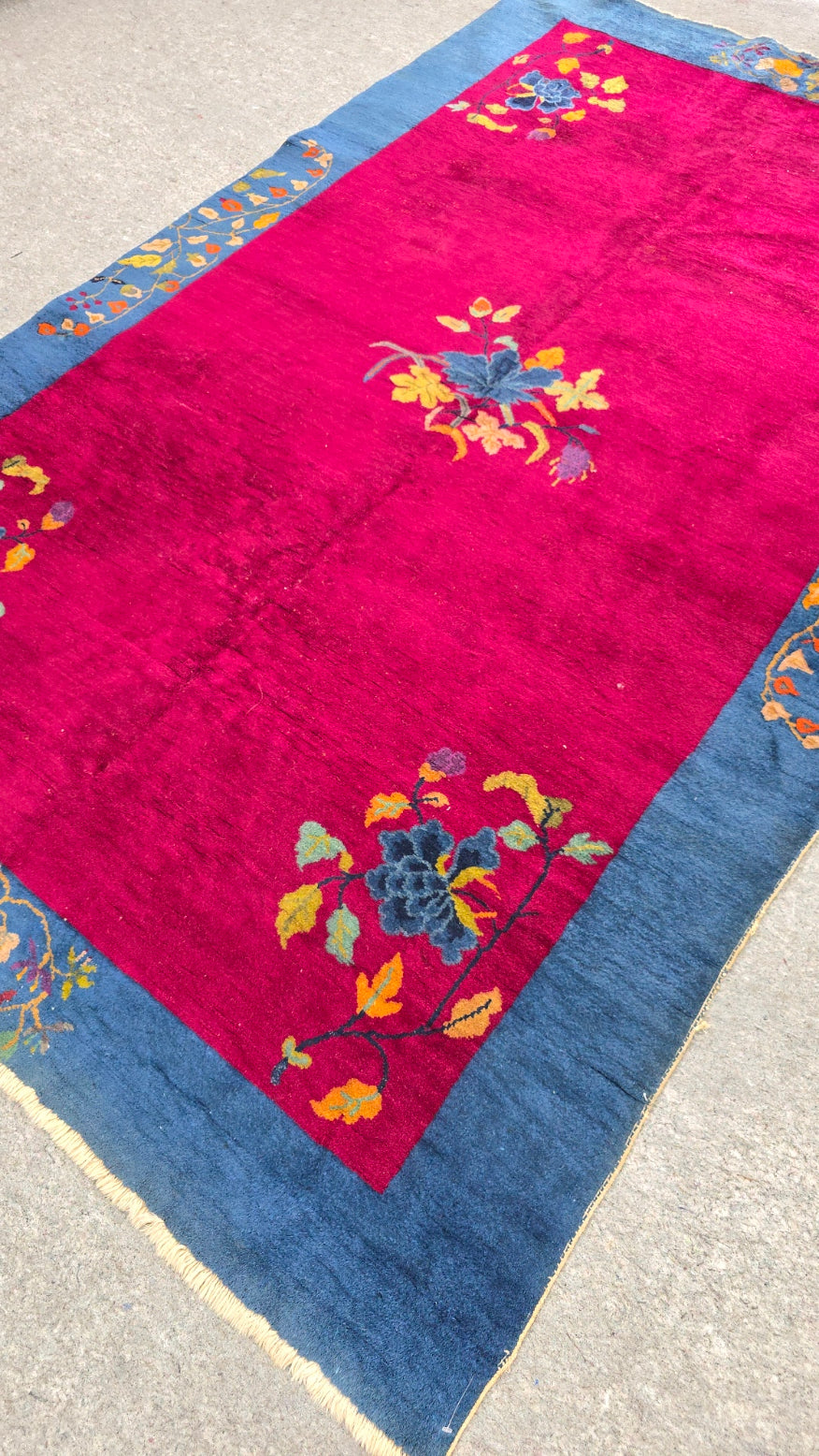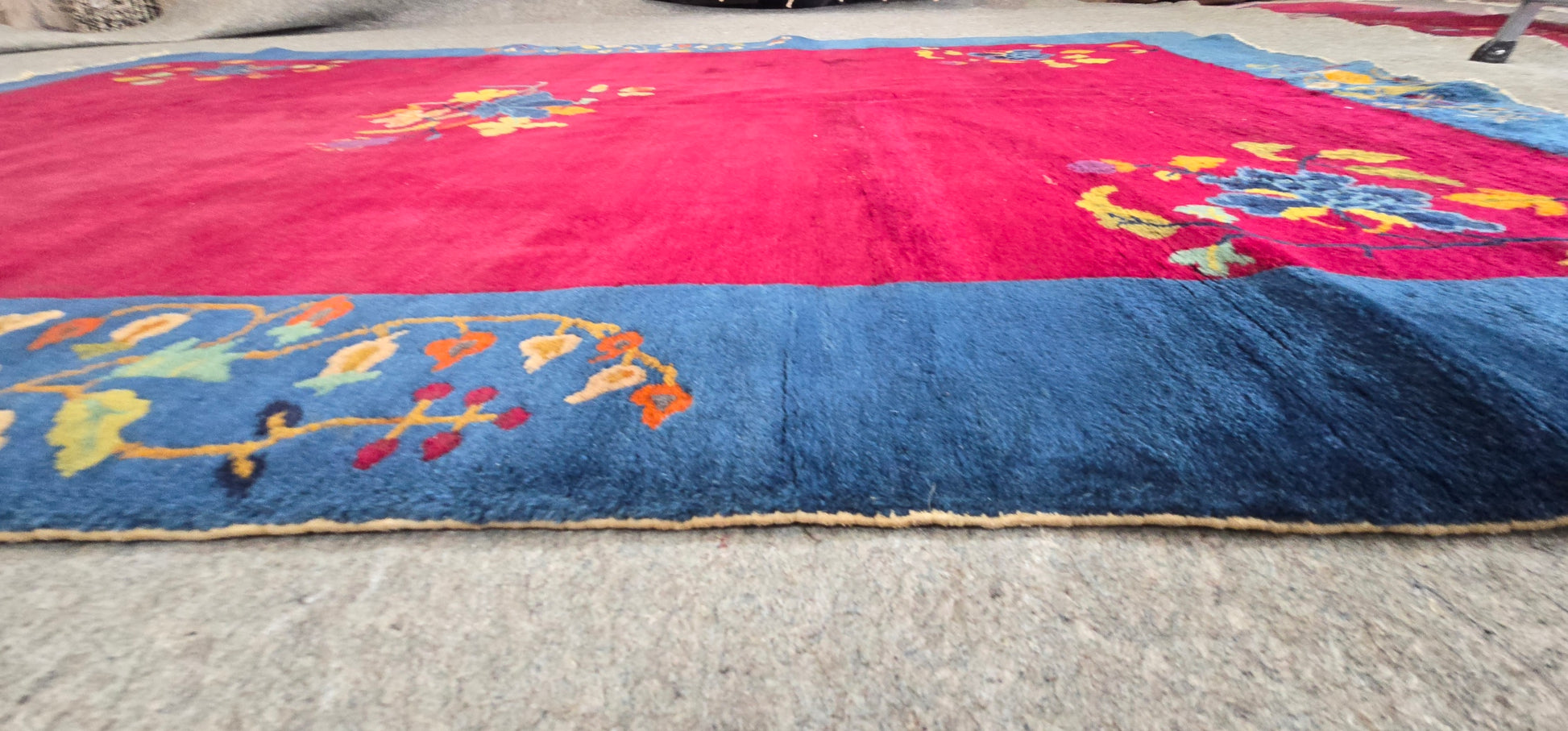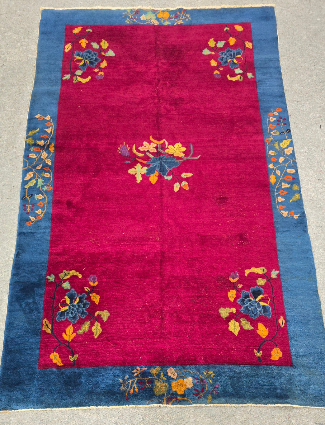 The most recognizable rugs from the 1920s and 1930s are Chinese Rugs made by Walter Nichols. These Nichols rugs, as they came to be known, were primarily made during the Art Deco movement in the early 20th Century. They were usually made of wool and silk and depicted floral designs in very rich, bold colors like magenta, turquoise, emerald, canary and ruby. They either had a very thick border or none at all. Nichols specialized in a mechanized wool spinning technique that produced a very thick strand - ideal for rugs. He was inspired by the works of many Art Deco artists and began to incorporate some classic deco motifs into his designs. Nichols rugs became wildly popular in the Art Deco era - they were luxurious and exotic - the epitome of Art Deco style.
