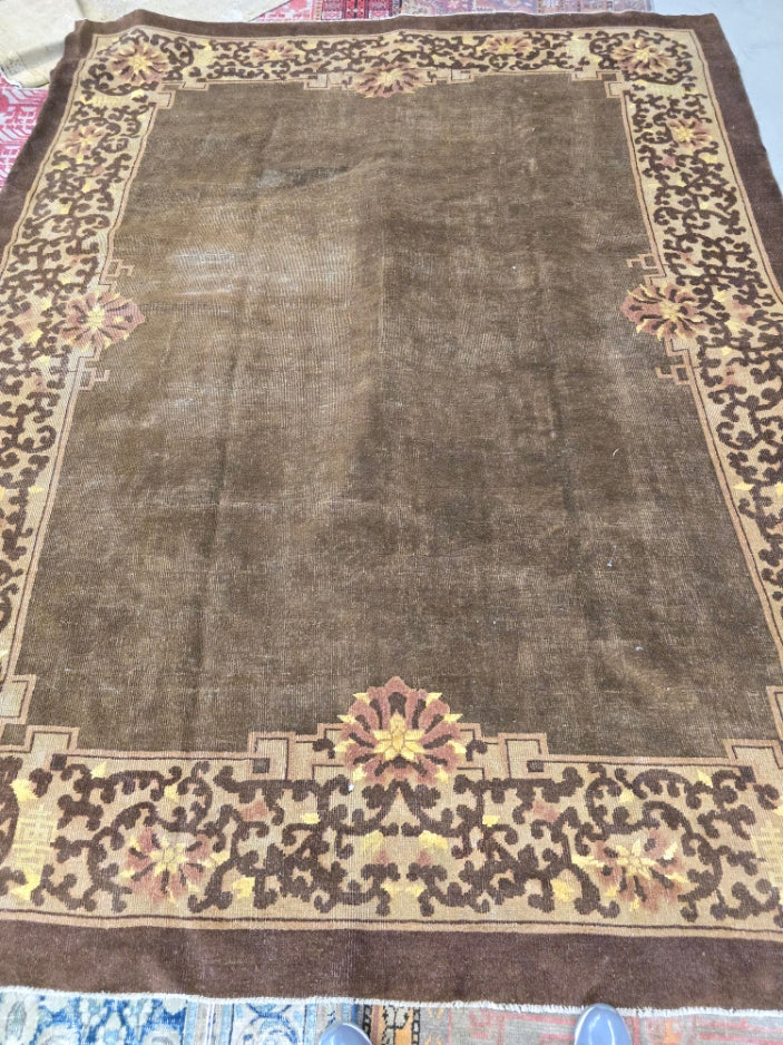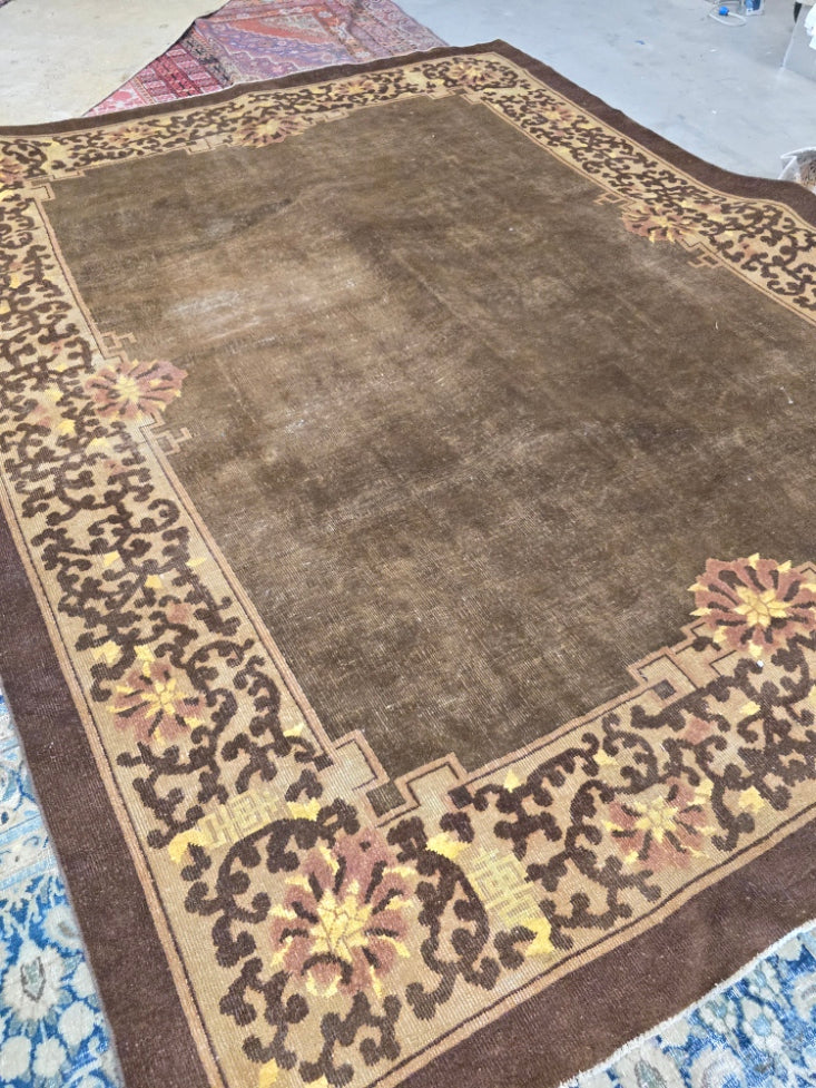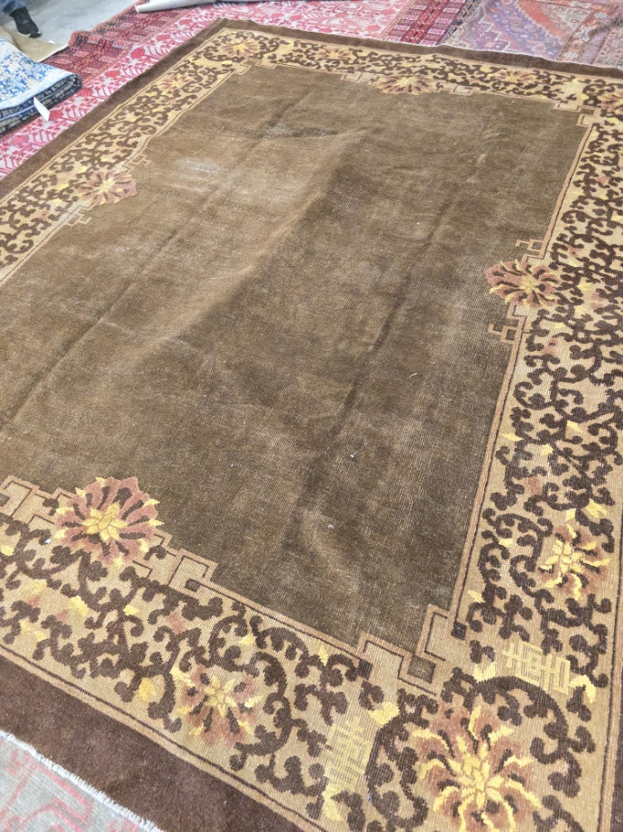 The most recognizable rugs from the 1920s and 1930s are Chinese Rugs made by Walter Nichols. These Nichols rugs, as they came to be known, were primarily made during the Art Deco movement in the early 20th Century. They were usually made of wool and silk and depicted floral designs in very rich, bold colors like magenta, turquoise, emerald, canary and ruby. They either had a very thick border or none at all. Nichols specialized in a mechanized wool spinning technique that produced a very thick strand - ideal for rugs. He was inspired by the works of many Art Deco artists and began to incorporate some classic deco motifs into his designs. Nichols rugs became wildly popular in the Art Deco era - they were luxurious and exotic - the epitome of Art Deco style.