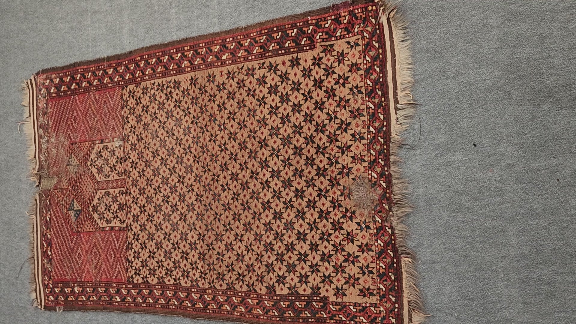 - Design: Mihrab Prayer Rug with Geometric and Floral Field
