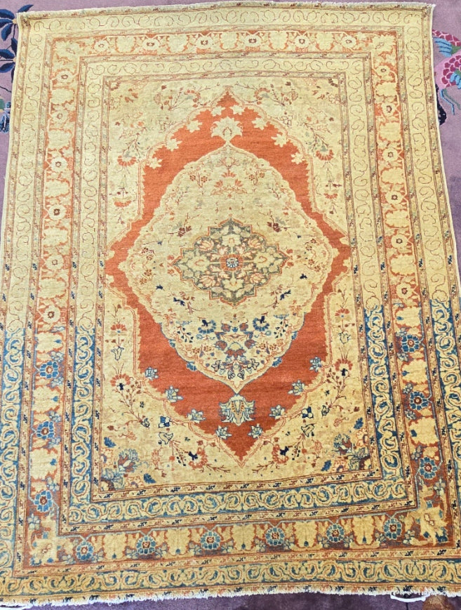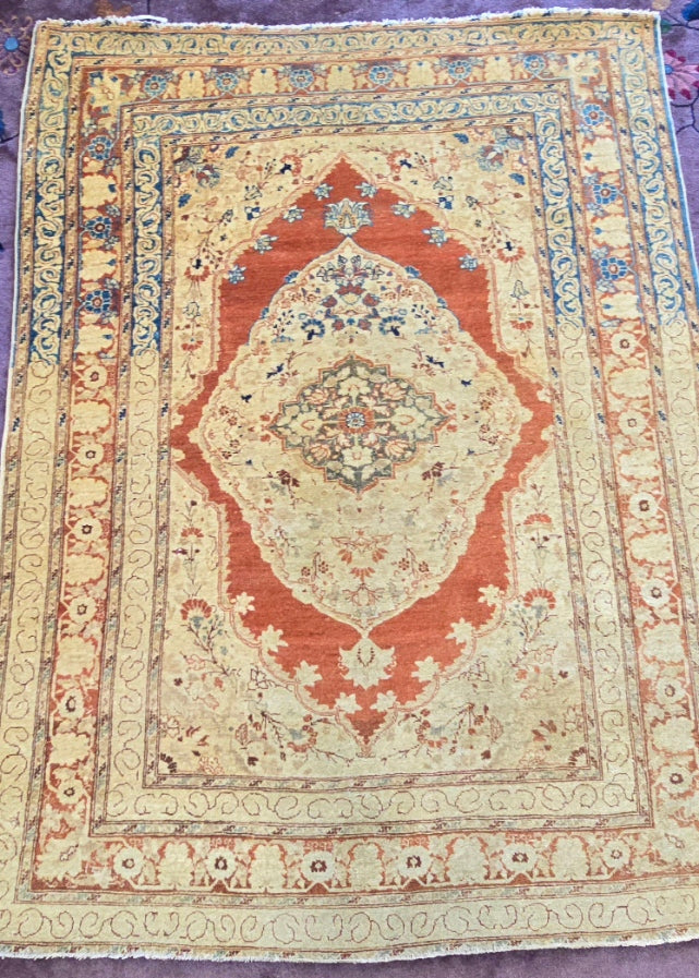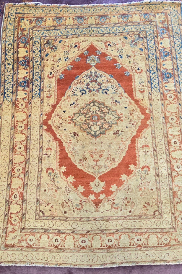 Antique Persian Haji Jalili Tabriz Rug – Hand-Knotted Floral Area Rug ( 4 x 5.4 )