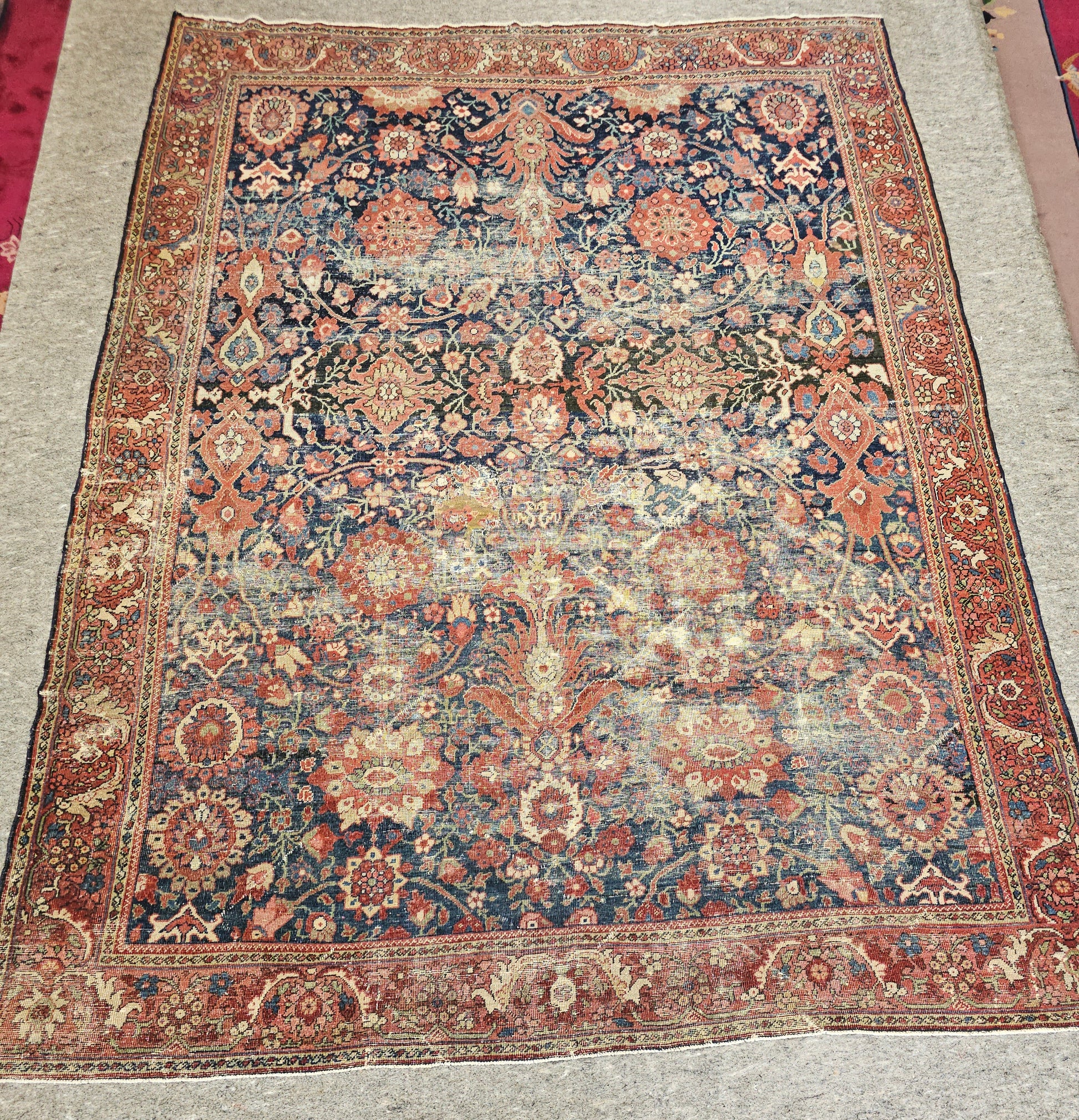 - Professional cleaning recommended for antique wool rugs
