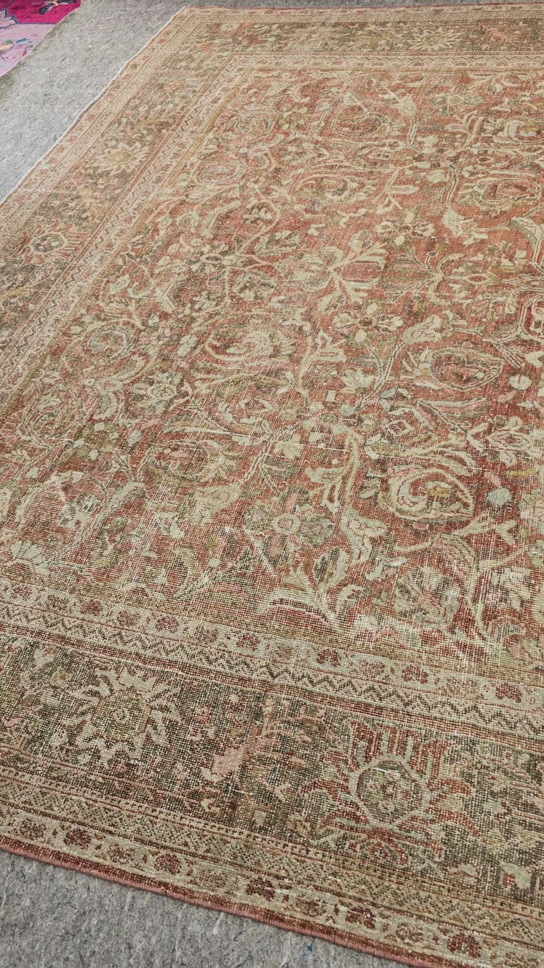 This antique Persian Mahal rug is more than just a floor covering – it’s a piece of Persian art and history. Its elegant floral design and faded hues add warmth and sophistication, making it the ideal centerpiece for formal spaces, grand entryways, or cozy sitting areas. A true collector’s item, this rug offers timeless beauty and investment value for those seeking authentic Persian craftsmanship.