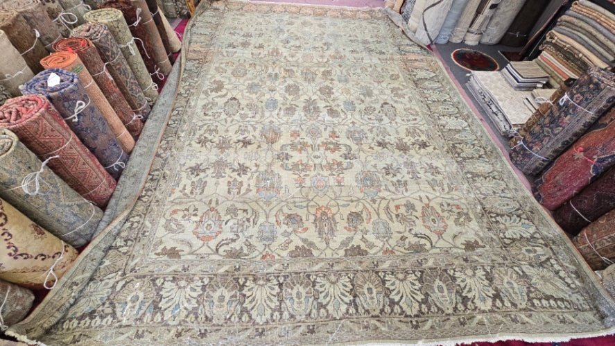 Embrace the timeless beauty of Persian craftsmanship with this antique Sultanabad rug, a striking piece handwoven in the late 19th century. Measuring 12 x 16.10 feet, this rug exemplifies the grandeur and artistry associated with Sultanabad weaving traditions, known for their large-scale patterns and rich yet harmonious color palettes.