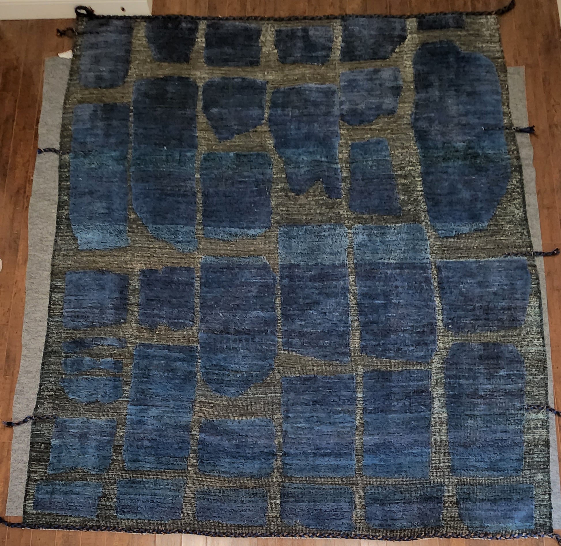 Blue and Black Moroccan Wool Rug – Handwoven 8.4 x 10 Modern Artisan Piece