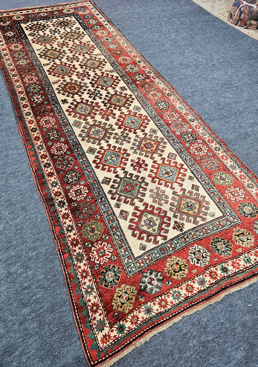 Collector's Antique Kazak Rug – Late 19th Century | 4 x 10 ft Full-Pile Caucasian Runner