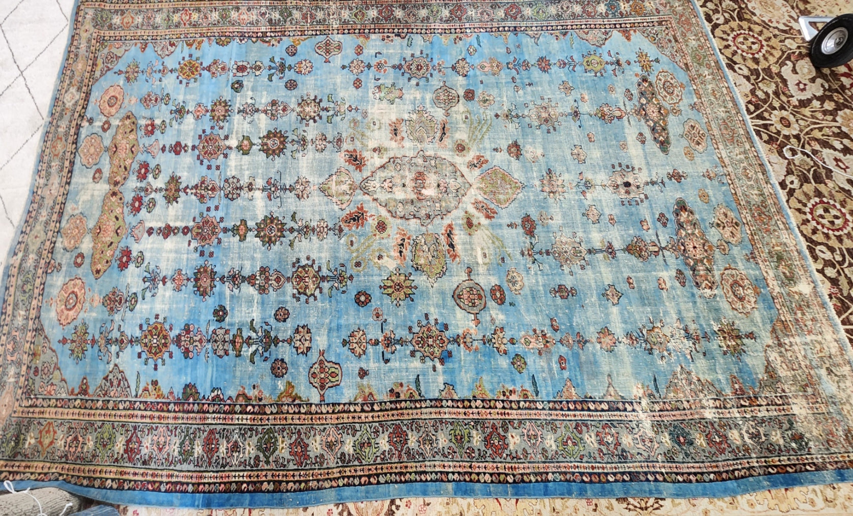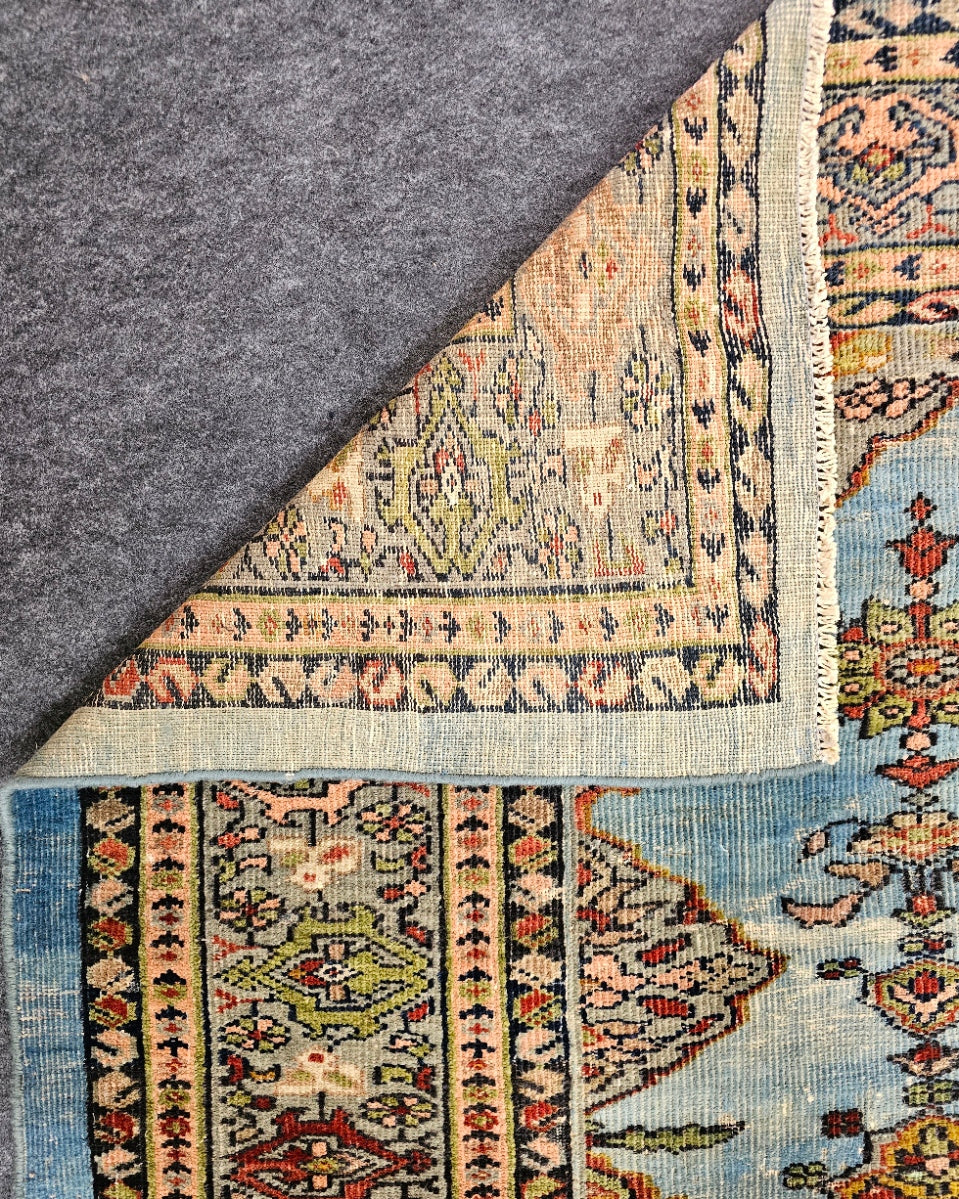 - Rare Sky Blue Palette – Blue backgrounds in Sultanabad rugs are scarce, making this piece a collector’s dream.
