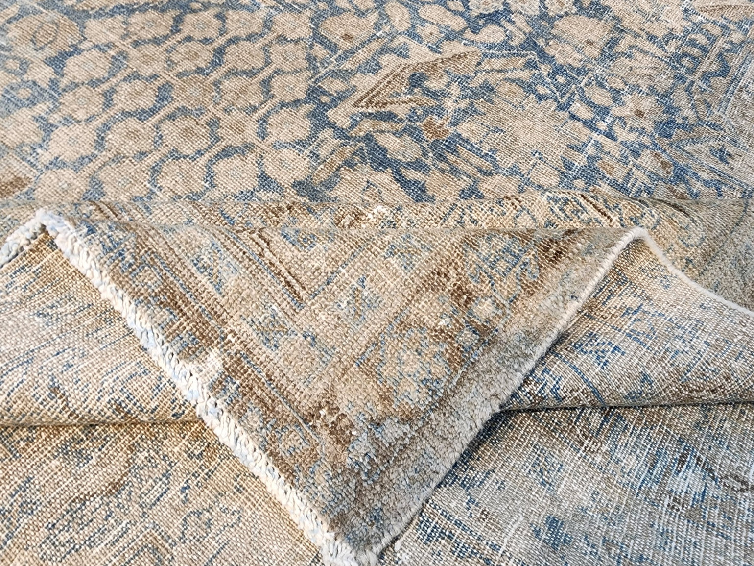 The delicate floral latticework and intricate border reflect the craftsmanship of Malayer weavers, who carefully incorporated symbolic elements representing nature, prosperity, and protection. This rug’s distressed, faded patina highlights its authenticity and adds character, making it a versatile piece for traditional, vintage, or modern interiors.