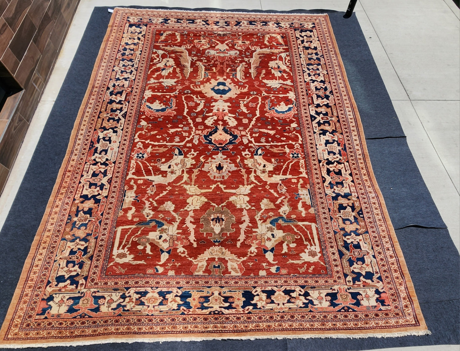 The versatility and bold aesthetic of this Bakshaish design rug make it a perfect statement piece for both modern and traditional settings. Whether placed in a formal living room, dining area, or study, the rug adds depth, warmth, and an element of historical charm to any space. Its geometric elegance and tribal flair create a captivating focal point.
