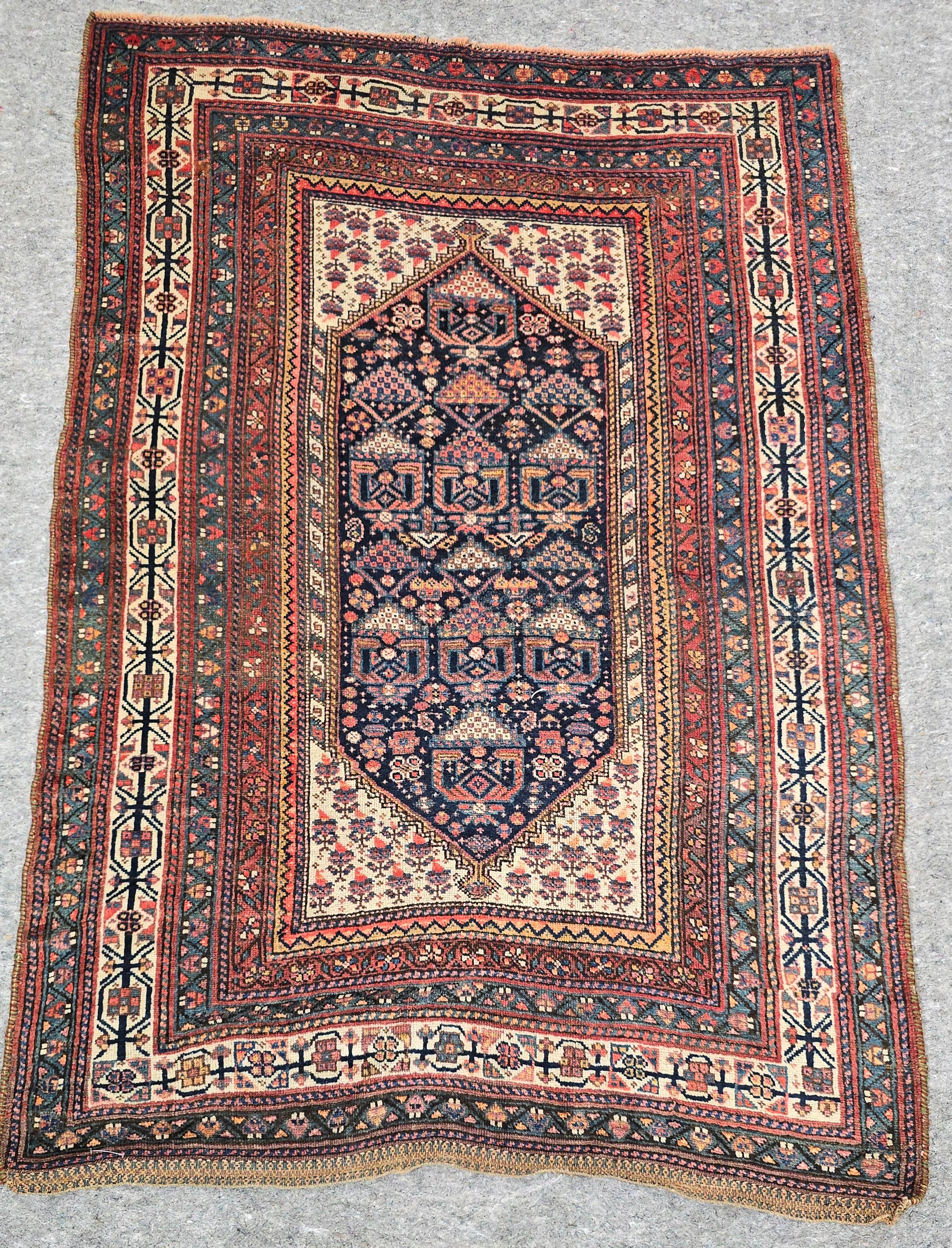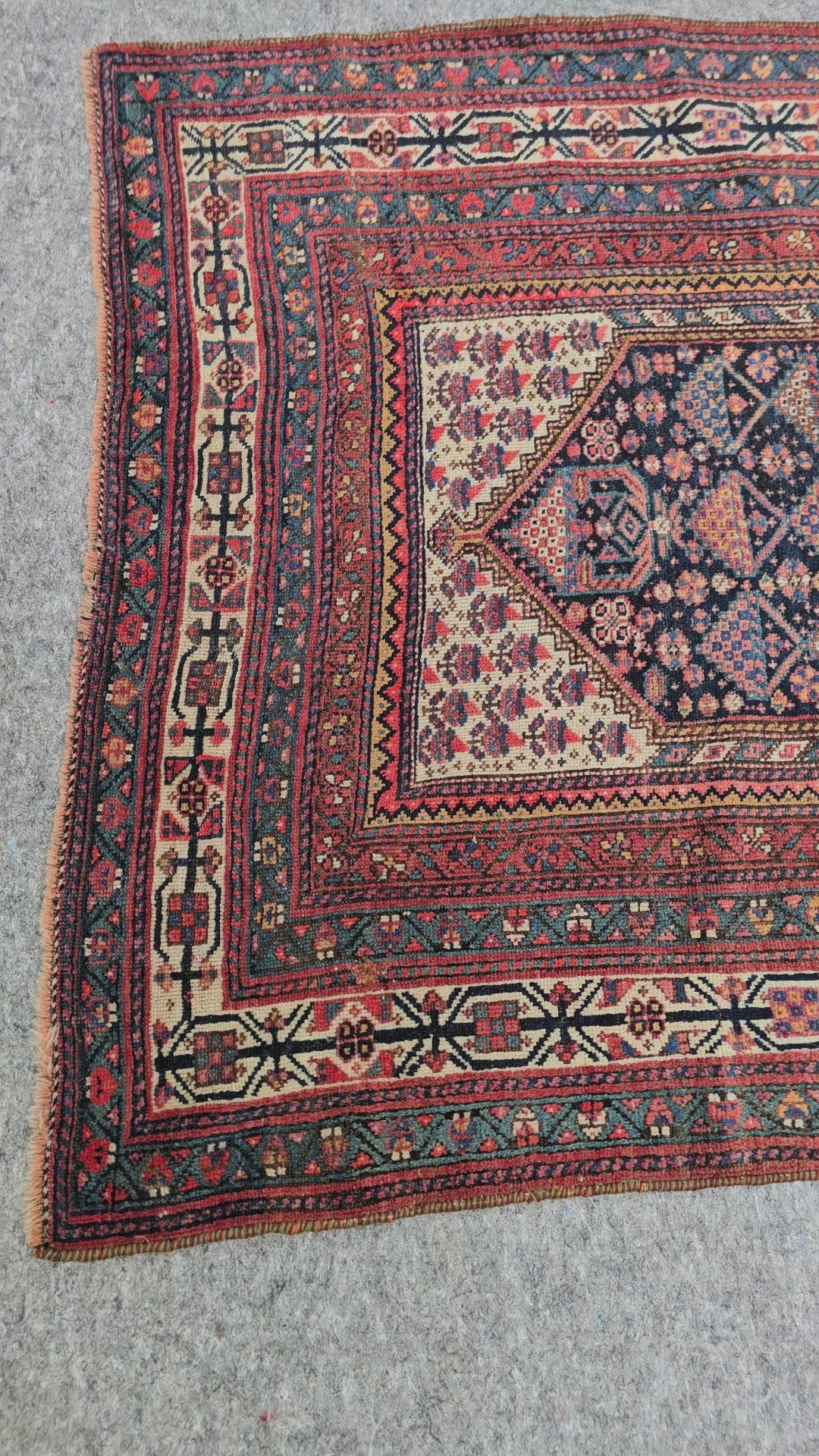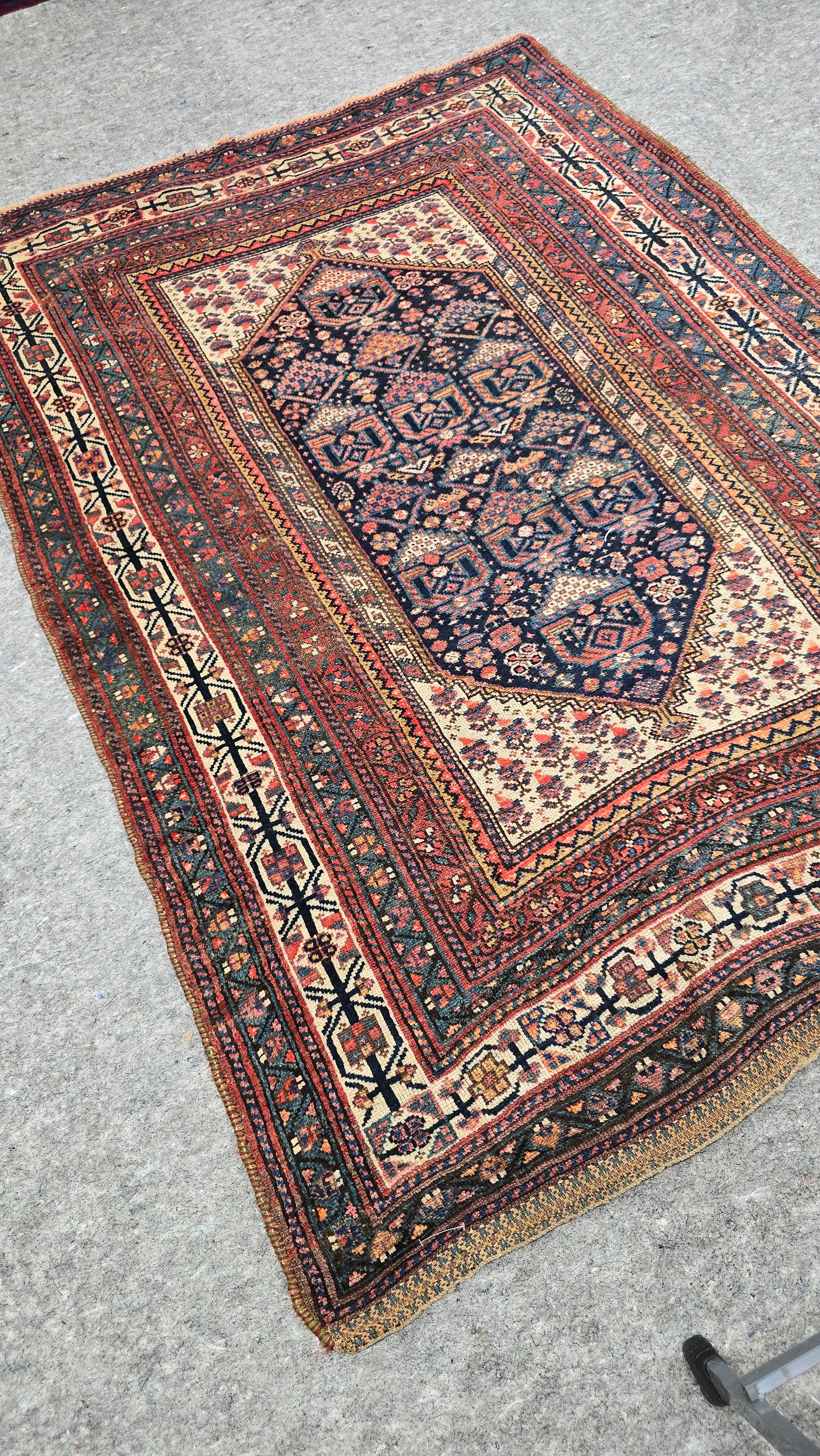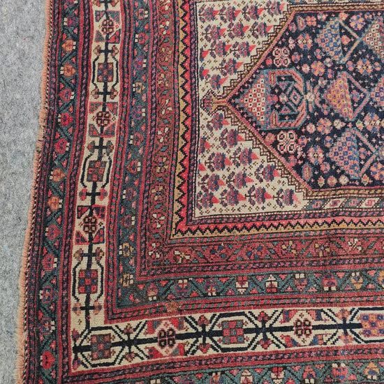 Enhance your home with the rustic beauty and intricate design of this Early 1900s Luri rug – a rare and elegant addition to any collection.