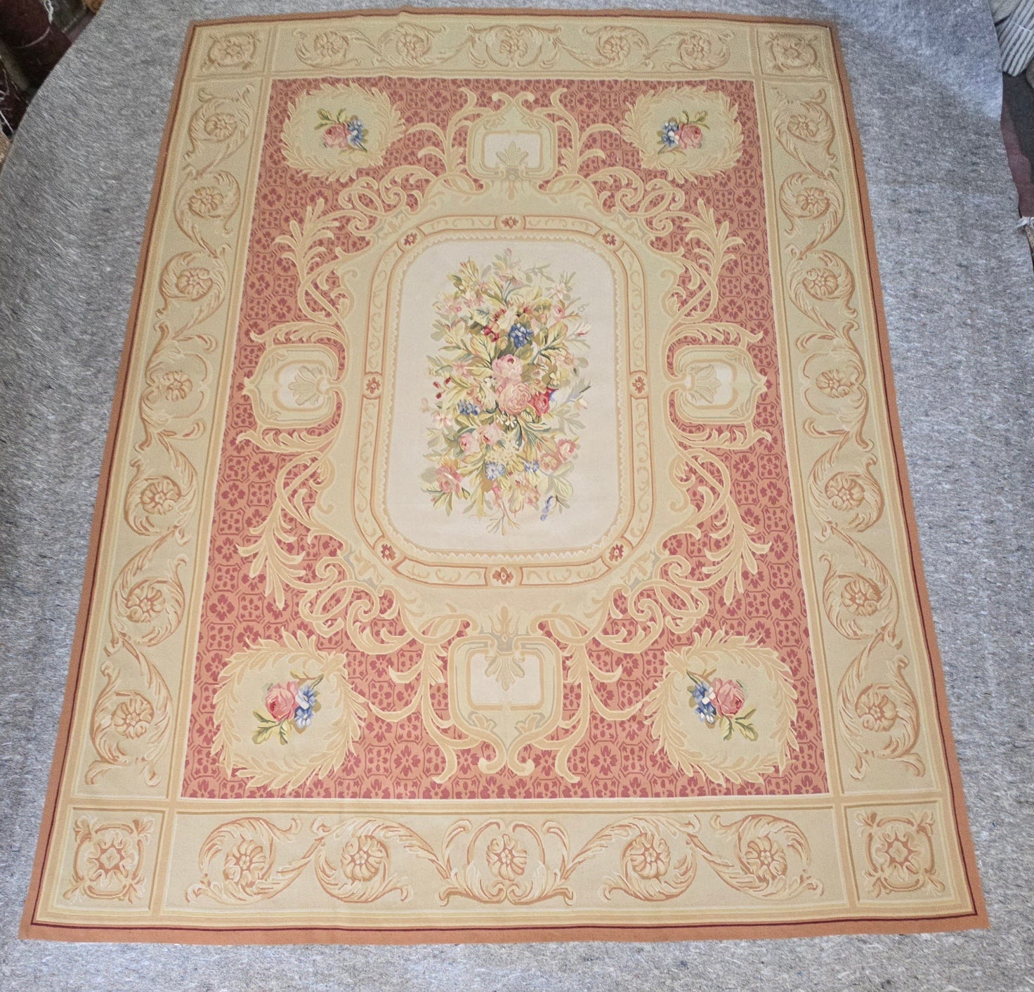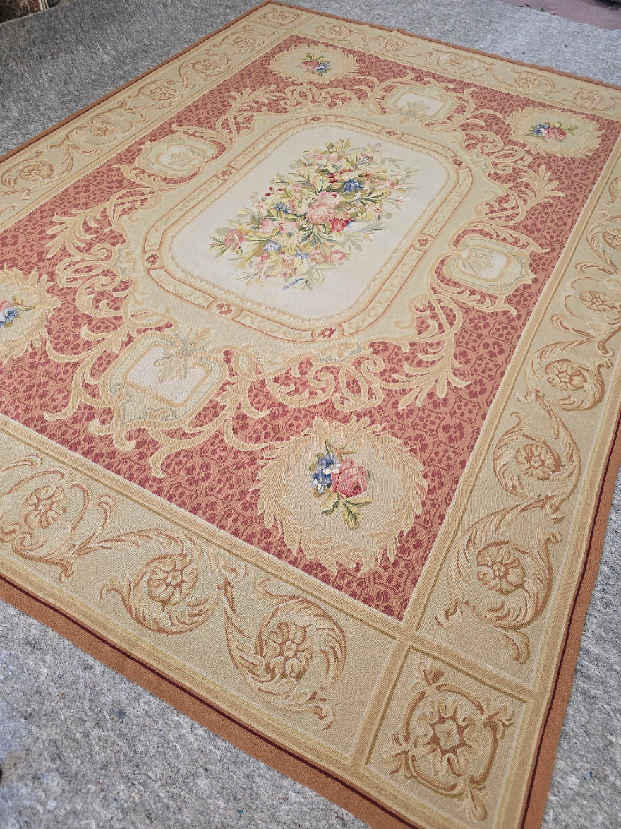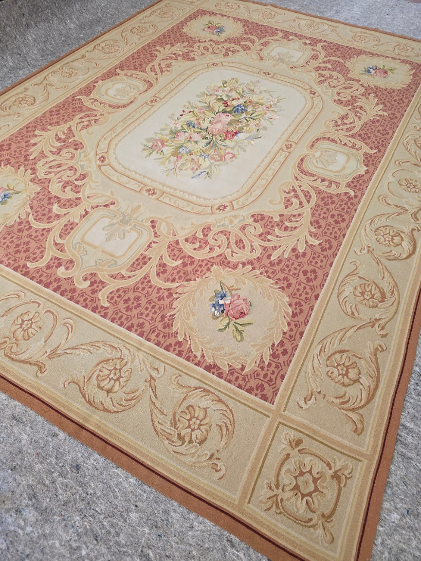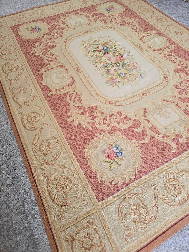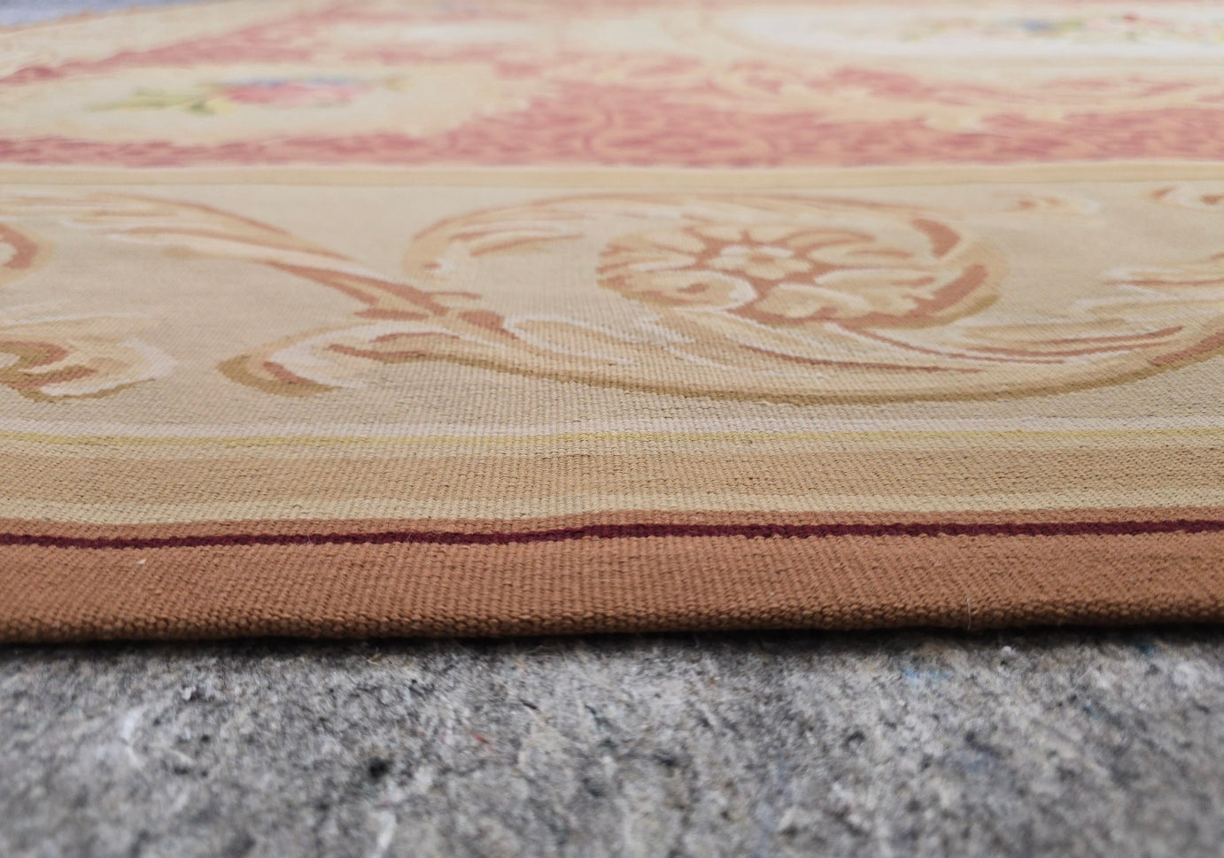 Hand Woven Recreations of the classic French flat weave Aubusson rugs that have been found in the finest homes and palaces since the late 17th century. Situated on the banks of the River Creuse in France Aubusson had been well known for producing tapestries for centuries. It is claimed that they were weaving in Aubusson as early as the 8th century but it was not until 1743 when the Kings Council decided to establish a carpet factory in the town that the style we now know as Aubusson came into being.