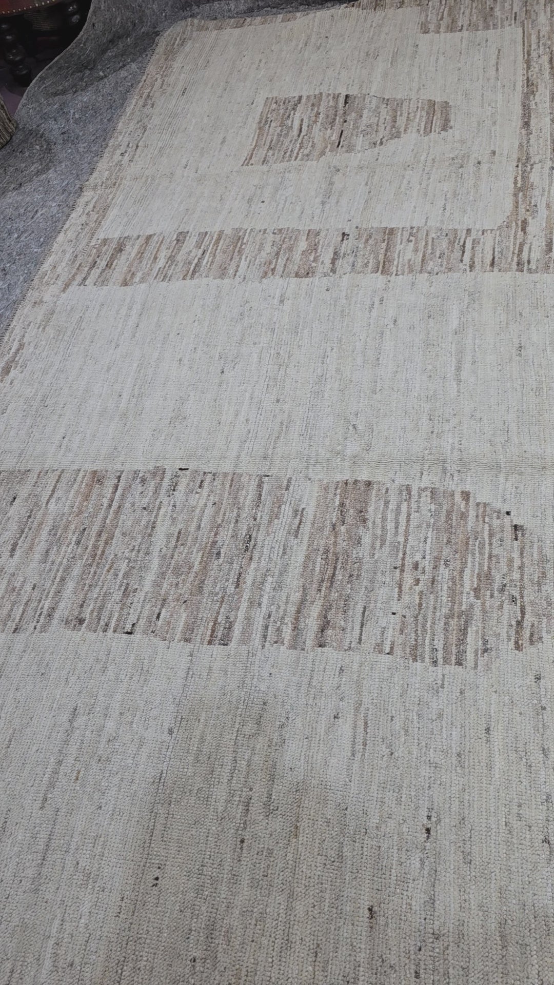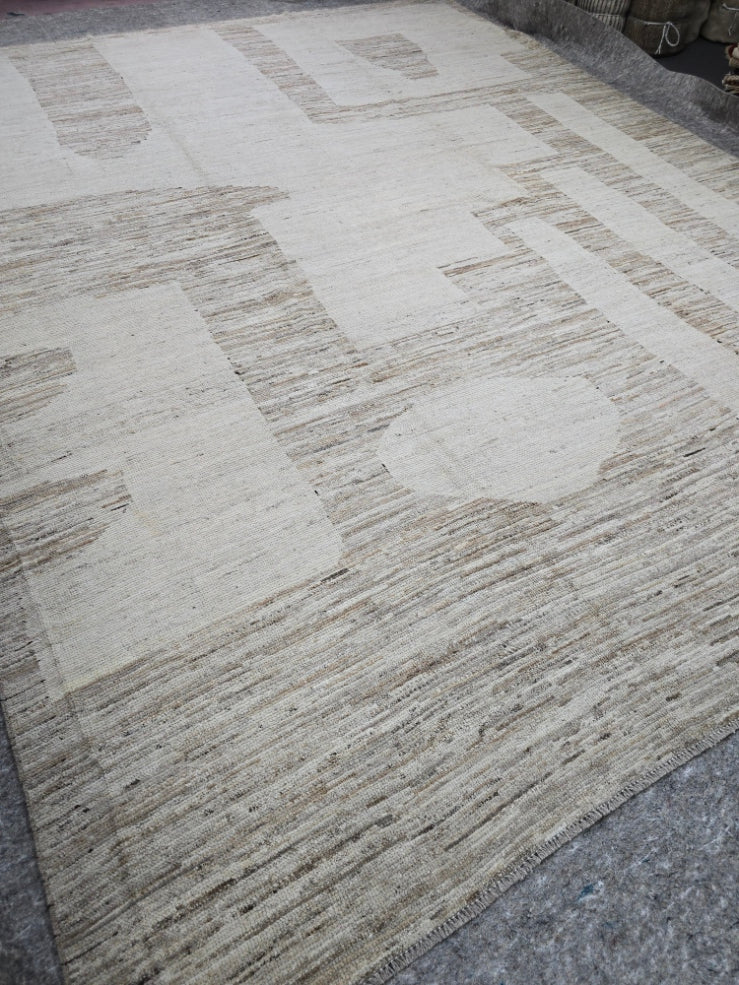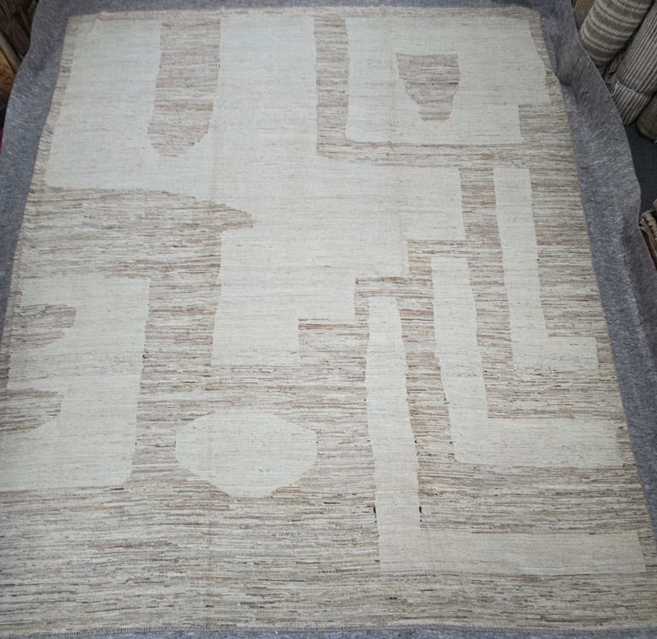 Crafted by Afghan artisans using natural wool, this rug offers unparalleled softness, durability, and timeless appeal. Its neutral palette and large size make it ideal for anchoring spacious living rooms, dining areas, or bedrooms, adding warmth and sophistication to your home.