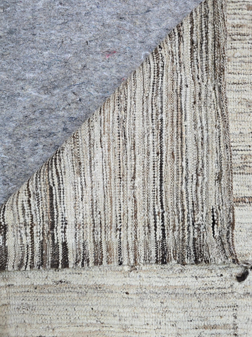 Elevate your home with this 10 x 14 ft Modern Moroccan style rug, a perfect fusion of traditional craftsmanship and contemporary design. This handwoven masterpiece features a minimalist grid pattern in natural ivory and taupe tones, creating a clean, geometric aesthetic that complements modern, Scandinavian, and rustic decor styles.