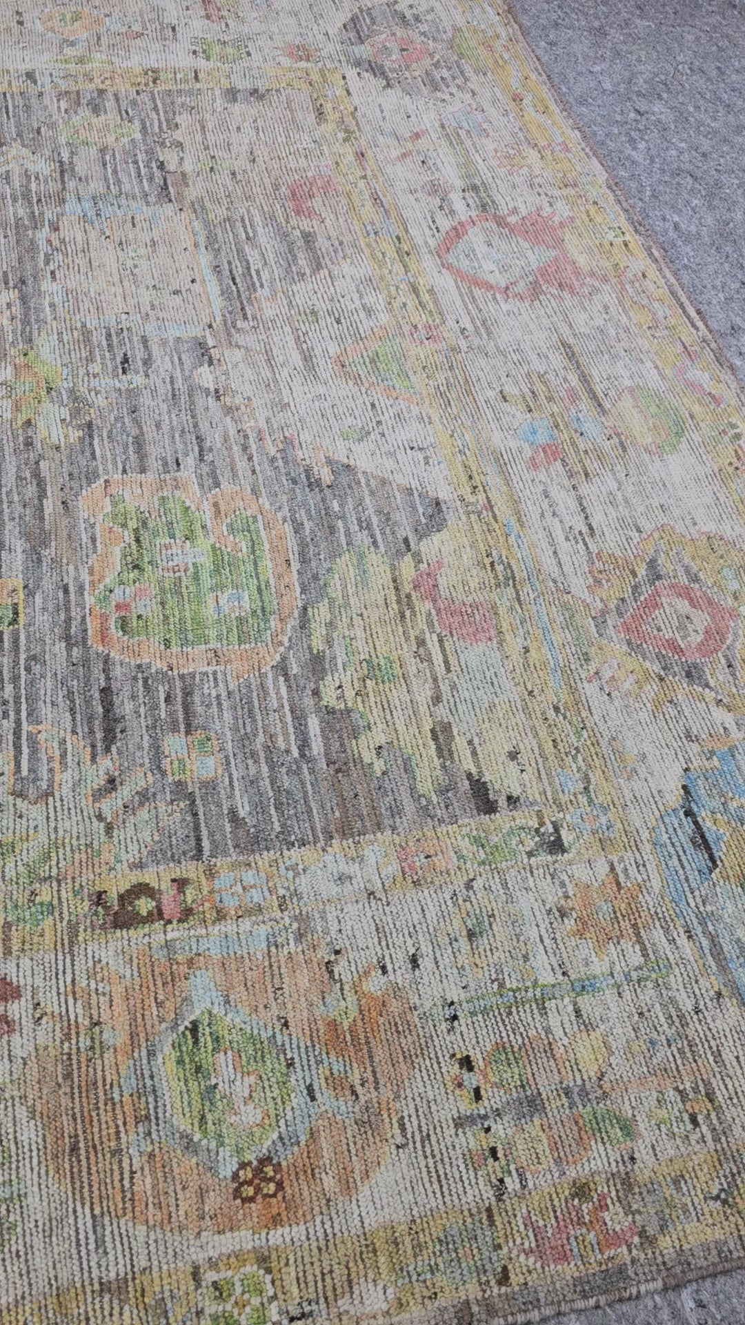This Afghan rug blends classic Oushak designs with modern craftsmanship, making it a versatile addition to living rooms, bedrooms, or formal dining areas. Its neutral tones and soft patterns add a sense of tranquility and sophistication, complementing both vintage and contemporary décor styles.