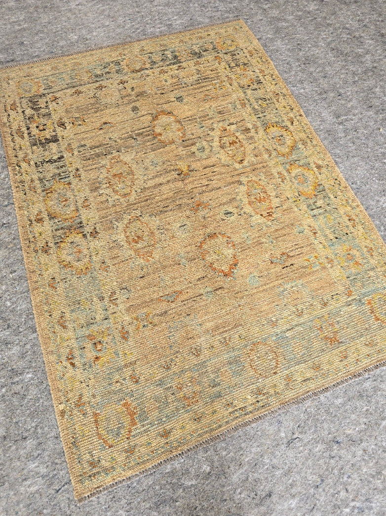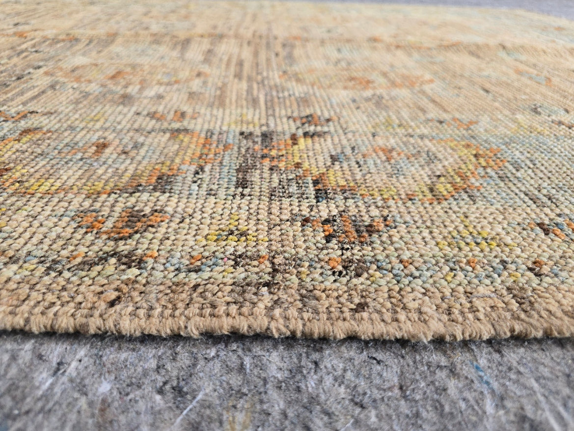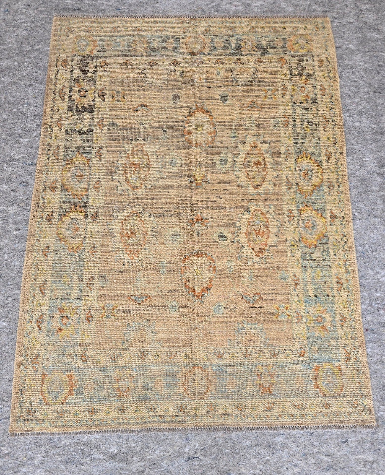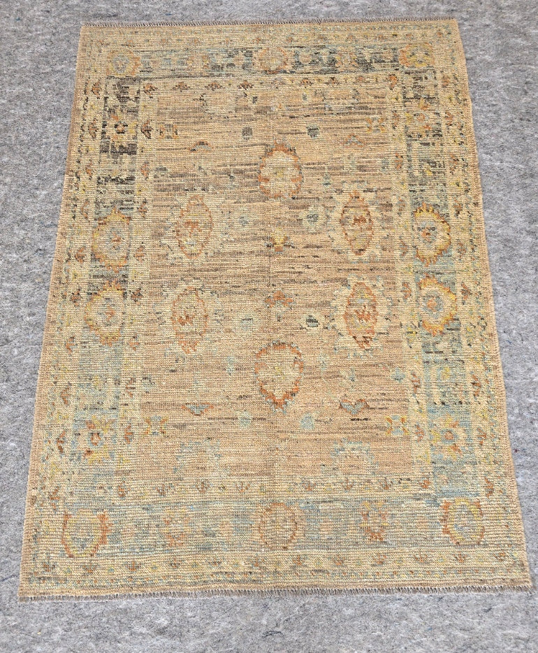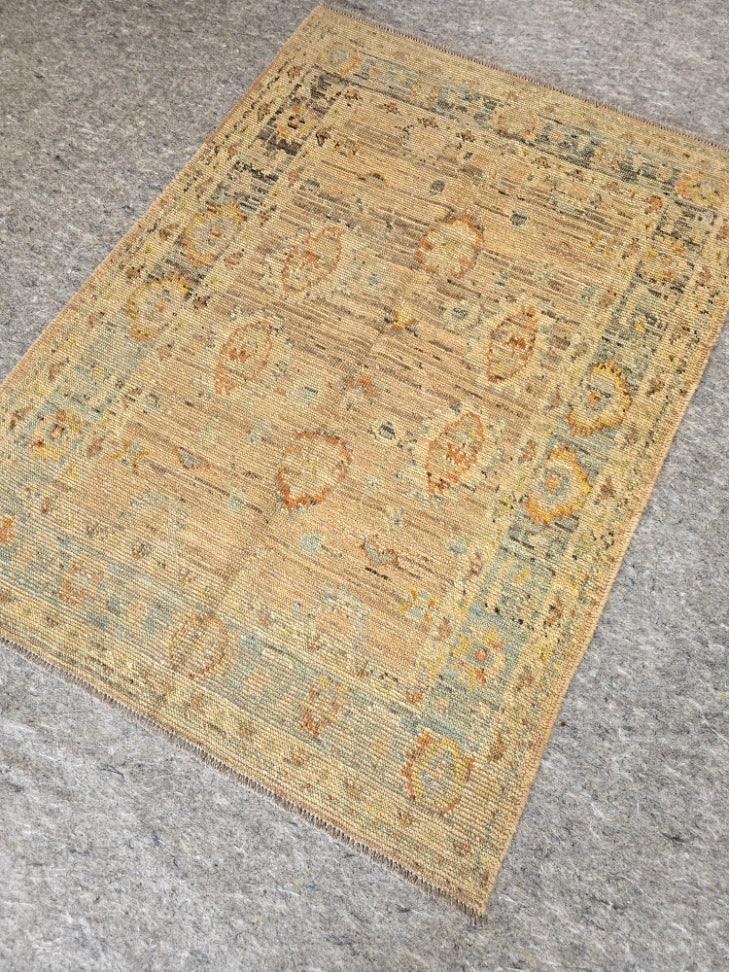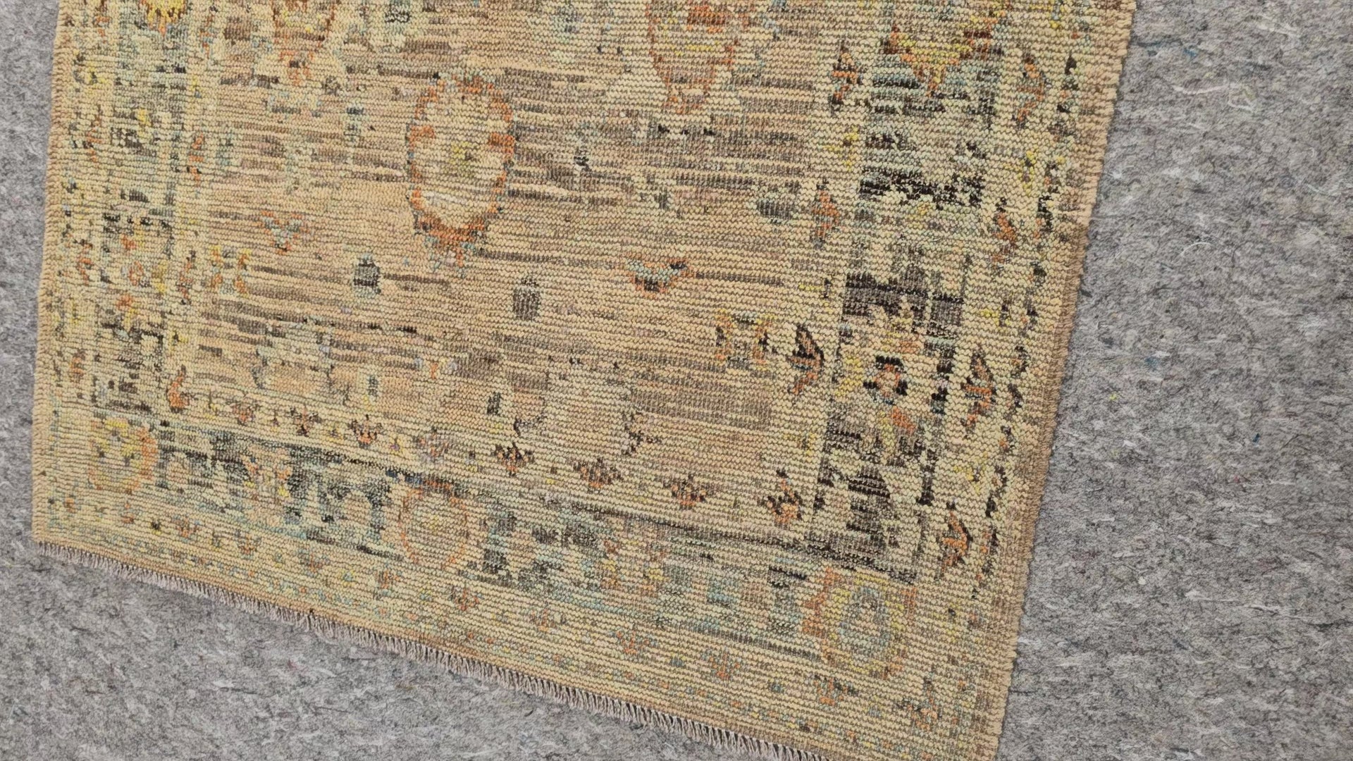 This Afghan rug blends classic Oushak designs with modern craftsmanship, making it a versatile addition to living rooms, bedrooms, or formal dining areas. Its neutral tones and soft patterns add a sense of tranquility and sophistication, complementing both vintage and contemporary décor styles.