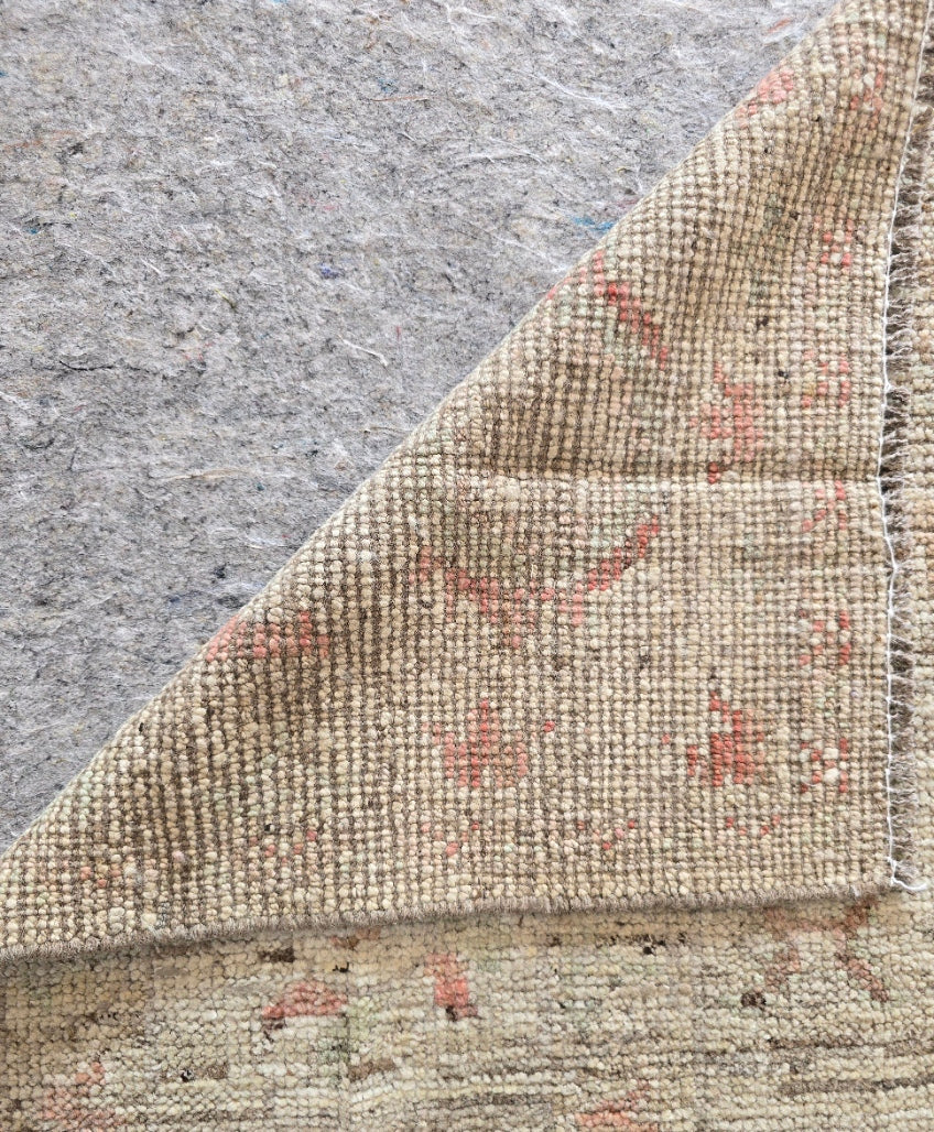This Afghan rug blends classic Oushak designs with modern craftsmanship, making it a versatile addition to living rooms, bedrooms, or formal dining areas. Its neutral tones and soft patterns add a sense of tranquility and sophistication, complementing both vintage and contemporary décor styles.