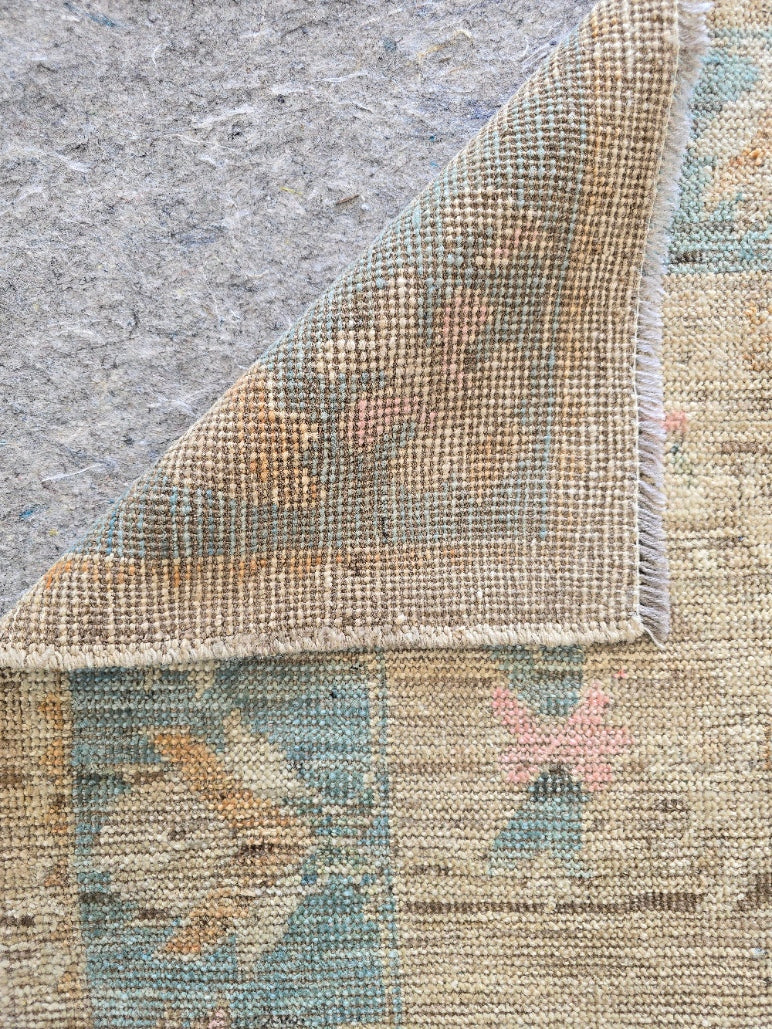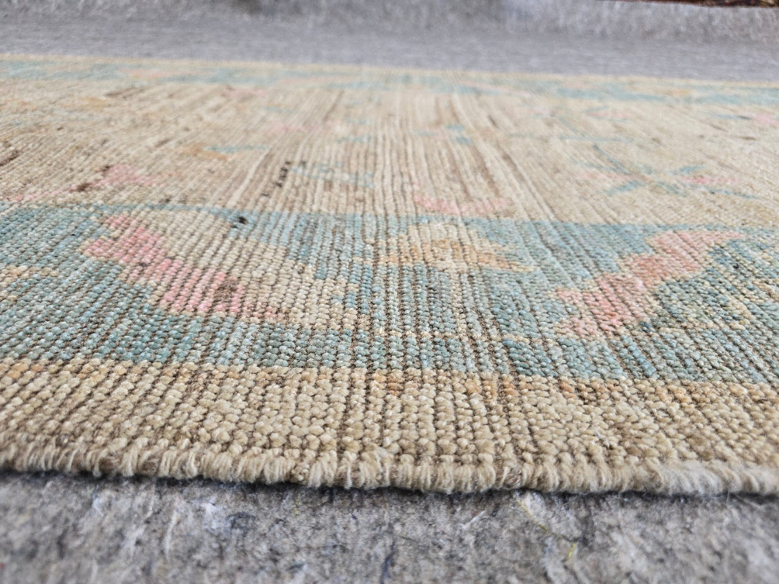 This Afghan rug blends classic Oushak designs with modern craftsmanship, making it a versatile addition to living rooms, bedrooms, or formal dining areas. Its neutral tones and soft patterns add a sense of tranquility and sophistication, complementing both vintage and contemporary décor styles.
