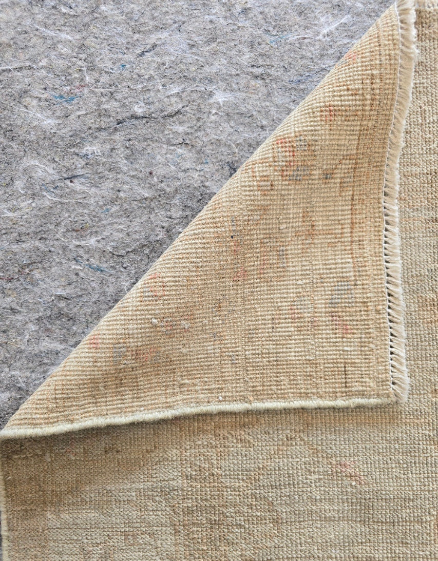 This Afghan rug blends classic Oushak designs with modern craftsmanship, making it a versatile addition to living rooms, bedrooms, or formal dining areas. Its neutral tones and soft patterns add a sense of tranquility and sophistication, complementing both vintage and contemporary décor styles.